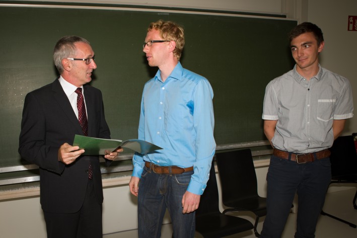 Neben einer Bachelor-Arbeit, Herr Simon Batzner, wurden diesmal ausnahmsweise 3 gleichwertige beste Masterabeiten der Herren, Jonas Keim, Florian Strube und Timo Theurich prämiert.