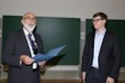 Der Verein der Freunde des Studiengangs Geodäsie und Geoinformatik vergab einen Preis für die beste Studienarbeit an den Studenten Ralph Laufer. Der Preis wurde vom stellvertretenden Vereinsvorsitzenden, Herrn Dr.-Ing. Eckhard Beuchle, überreicht