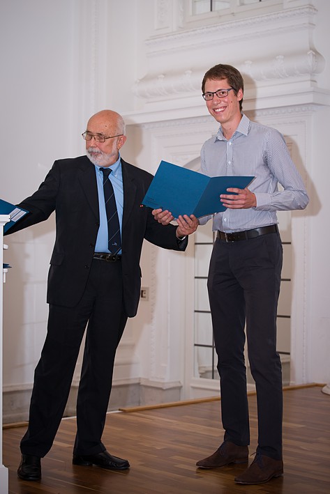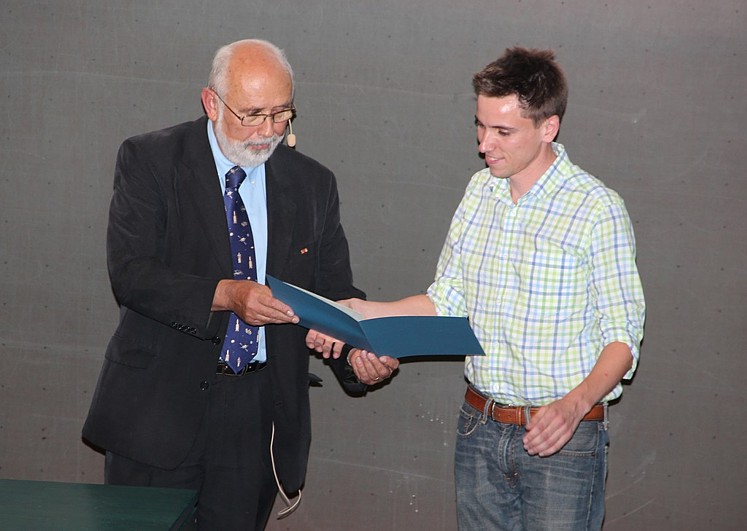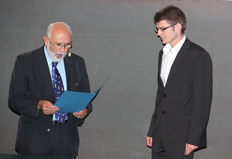 Professor Dr. Wolfgang Keller vom Geodätischen Institut der Universität Stuttgart zeichnete den jahrgangsbesten Absolventen des Studiengangs aus. Herr Daniel Wilhelm erhielt aus seiner Hand den dafür gestifteten Karl-Ramsayer-Preis.