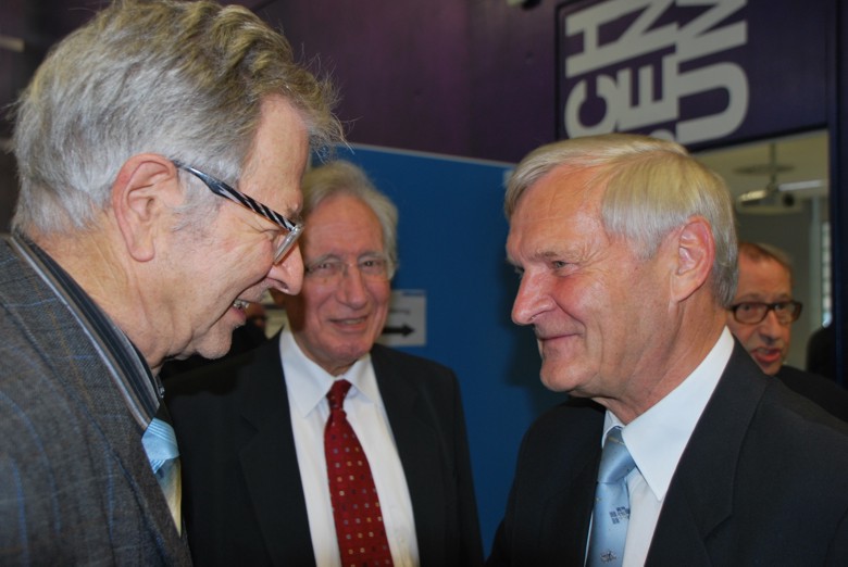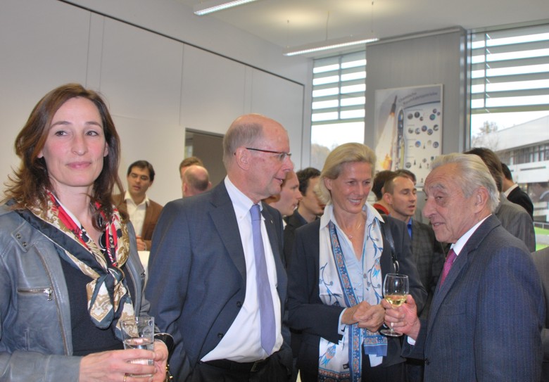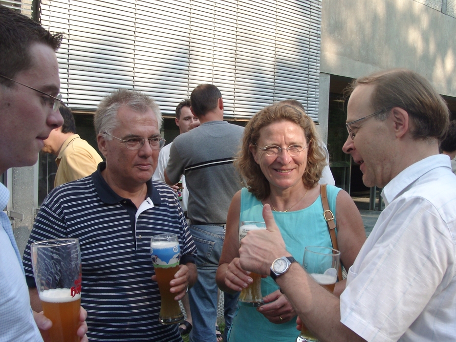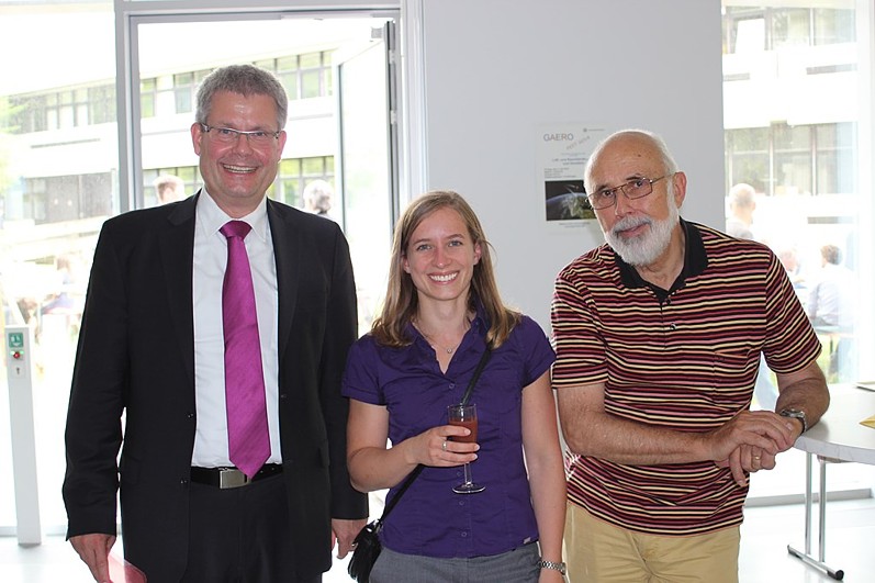 Anerkennende Worte und einen Dank an Dörner für seine Arbeit an den Stuttgarter Studenten und für die Fakultät fanden beim anschließenden lockern Zusammensein die Professoren Drechsler und Kühn. Zum geselligen Umtrunk mit Riesling und Trollinger und Brezeln, zu dem der Referent eingeladen hatte, gab es Geschenke von der Fakultät und dem Institut. Der Nachmittag war kein Abschied für immer. Dipl.-Ing. Heiner Dörner wird der Fakultät noch einige Zeit erhalten bleiben. Vorlesungsvertretungen am IFB und seine eigen Vorlesungen „Nutzung regenerativer Energien“ und „Geschichte der Windenergienutzung“ stehen weiter allen Interessenten offen. Und als Vorsitzender vom „Verein der Freunde der Luft- und Raumfahrttechnik der Universität Stuttgart“ ist er weiterhin an der UNI und in der Fakultät präsent.