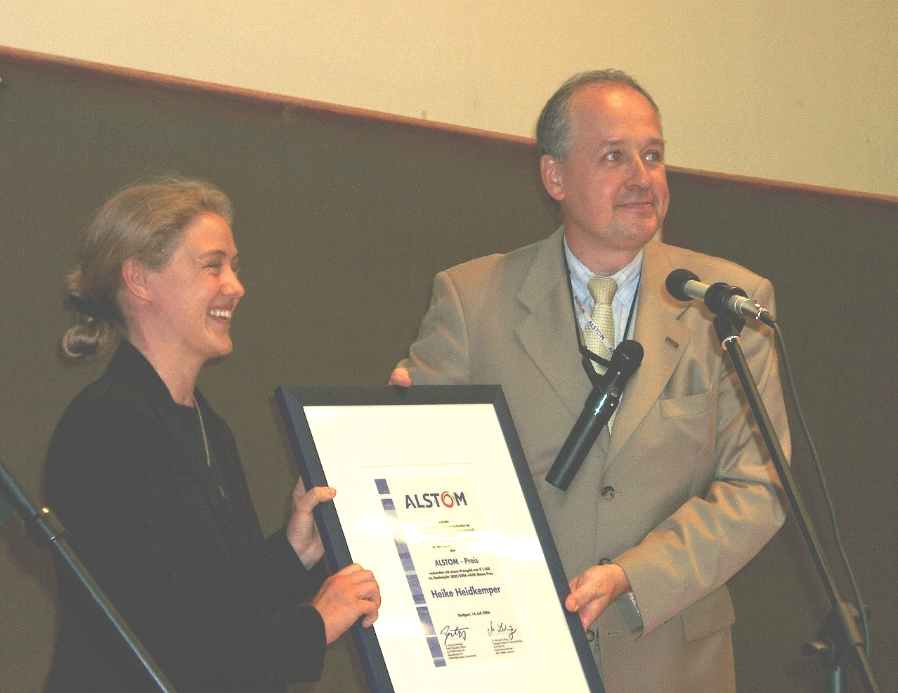 Herr Jens Utzmann konnte für seine theoretische Diplomarbeit, angefertigt an der University of Michigan und betreut vom IAG, ebenso eine Preisurkunde und ein kleines Geldgeschenk (500 €), in Empfang nehmen. Er hatte neue finite Strömungselemente für das vorhandene Strömungsberechnungsprogramm HYDSOL entwickelt.