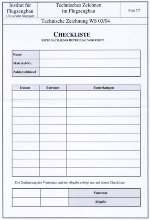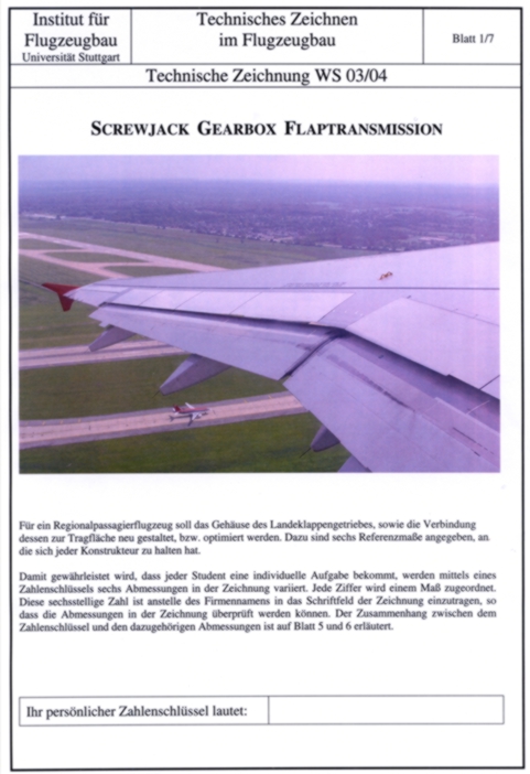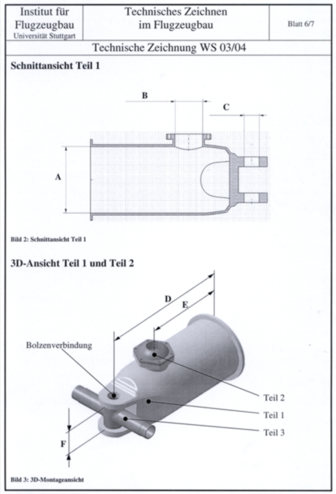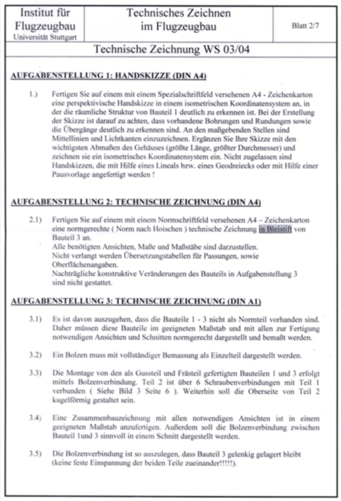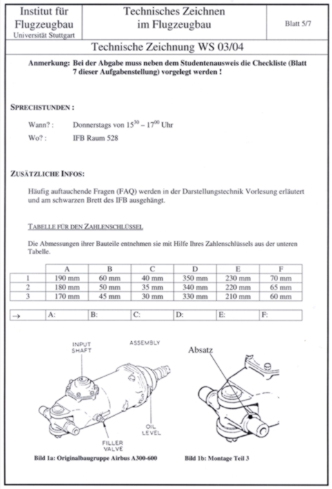 Studenten eine individuelle Technische Zeichnung angefertigt werden.