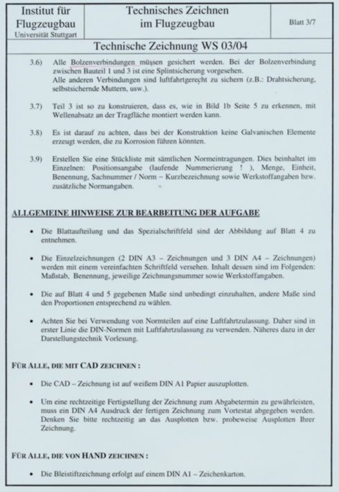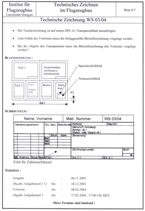 Zum Beispiel wurde am 2. November 2000 die 1.-Semester-Zeichenaufgabe (TZ) für